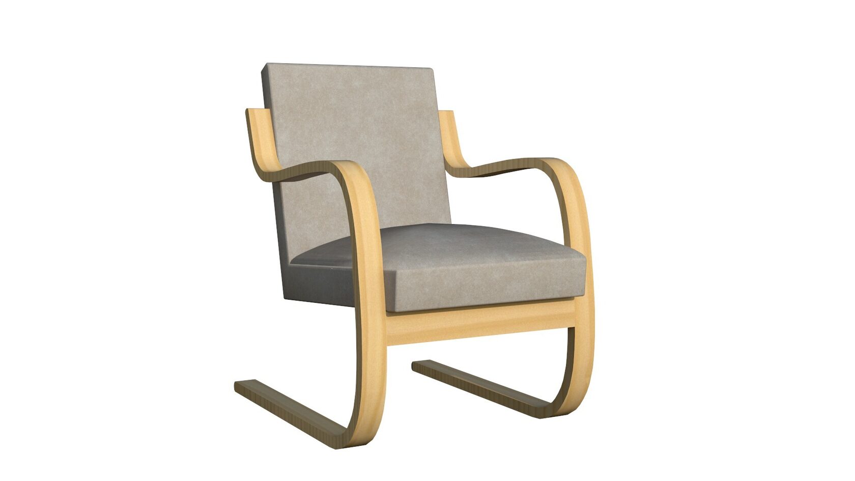 Кресло Armchair 402 дизайна Алвара Аалто смоделировано по фото методом Camera Matching в fSpy.