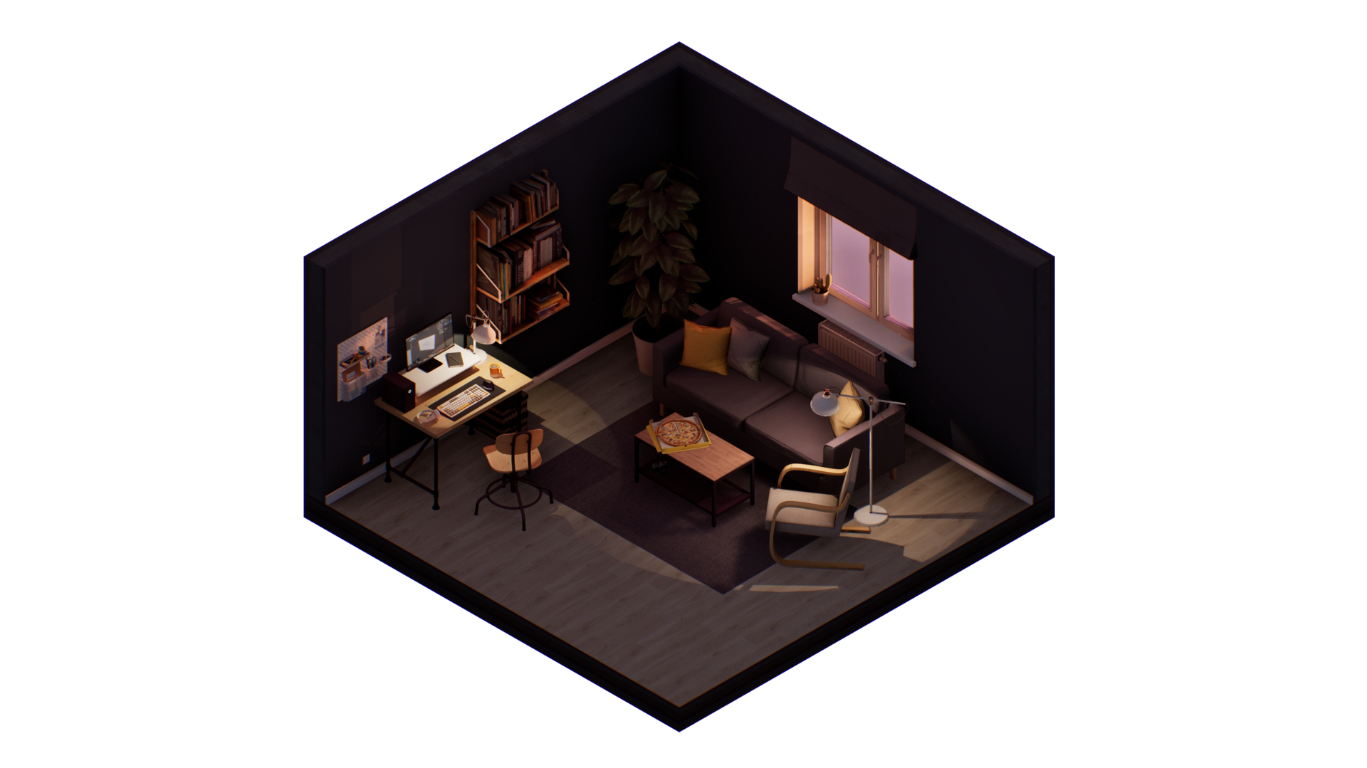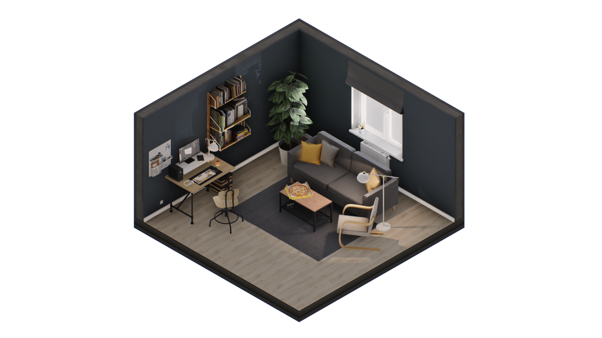 Большая часть пропсов смоделирована на основе схем с общими размерами объектов из каталога Икеи.